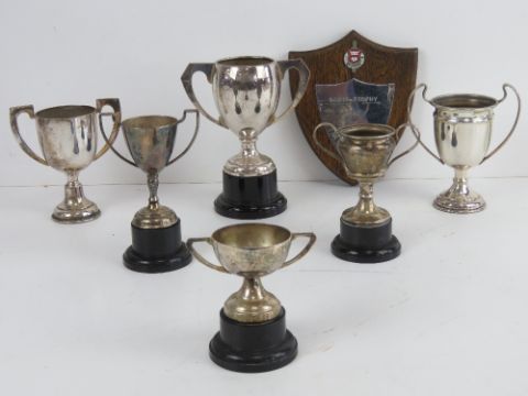 A quantity of thirty-three assorted silver plated engraved trophy cups, together with six blank unengraved cups. Thirty-nine in total.