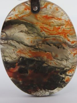 A HM silver thistle design pendant in the style of Charles Horner, together with a large agate pendant, a sterling silver bangle, and a 925 silver chain bracelet. Four items.