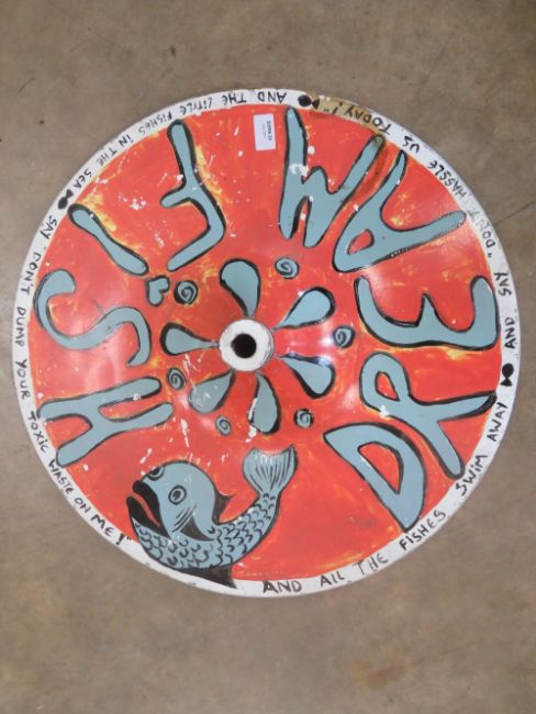 A piece of handpainted Pop Art in the form of a circular umbrella stand, 58cm dia.