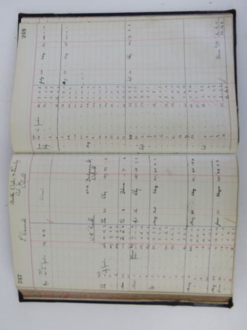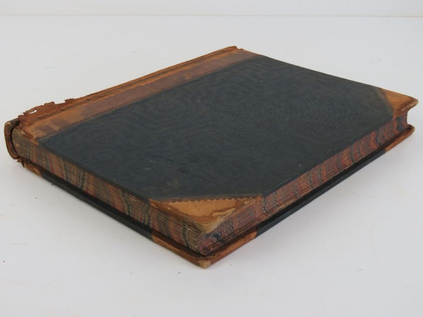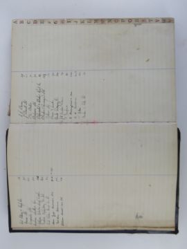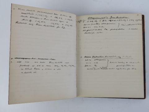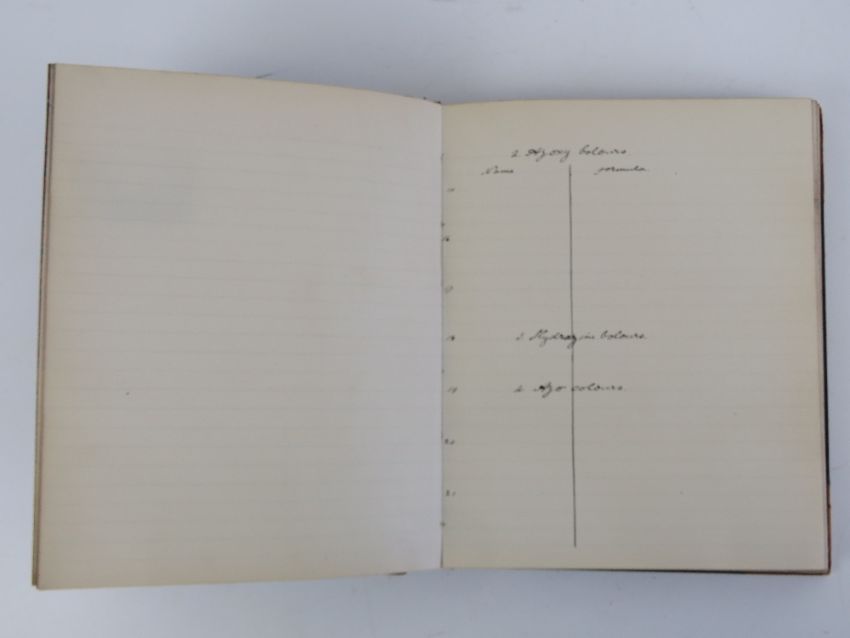 Two vintage ledger books, one being leather half bound, both partially inscribed.