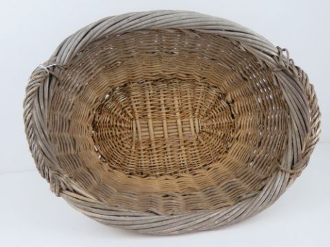 A wicker log basket of oval form having twin handles, measuring 59cm wide.