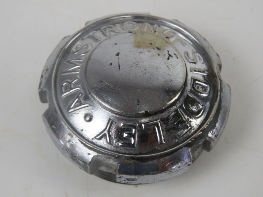 A Shell Lubrication Armstrong-Siddeley Sapphire Model 2.4 lubrication chart, together with an Armstrong-Siddeley radiator cap. Two items.