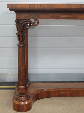 A rosewood buffet serving table raised over carved pillars united by an inverted solid base, finely made, 160 x 50 x 92.5cm.