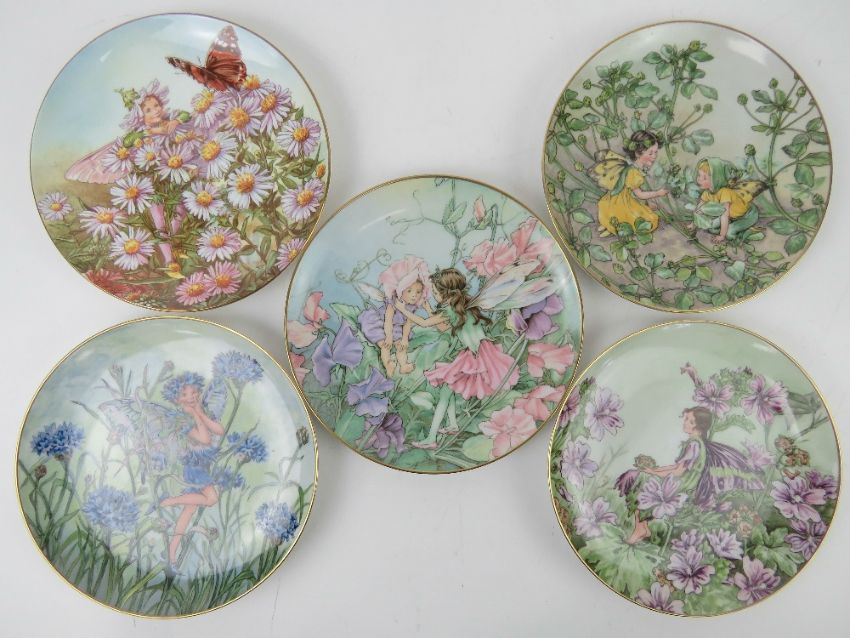 A set of four Villeroy & Bosch flower fairy plates based on the drawings of Cicely Mary Barker. Together with another similar by Border Fine Bone China. Five items.