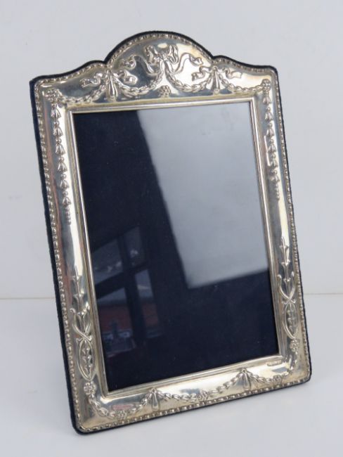 A HM silver photograph frame, 7 x 3 3/4" photo size, having velvet easel back, repoussé floral sways and decoration, hallmarked for Sheffield.