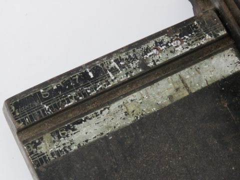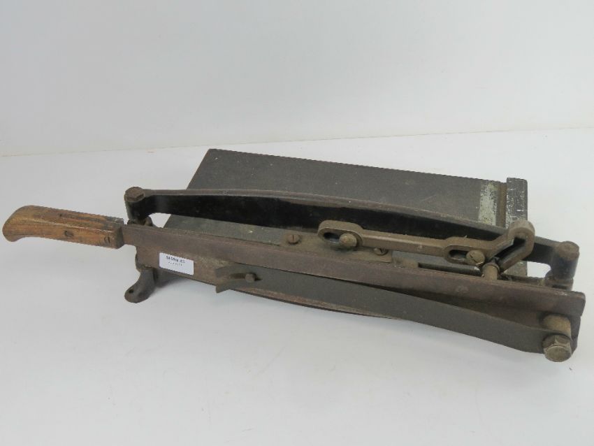 A vintage hinged paper guillotine on cast metal base, c1950s.