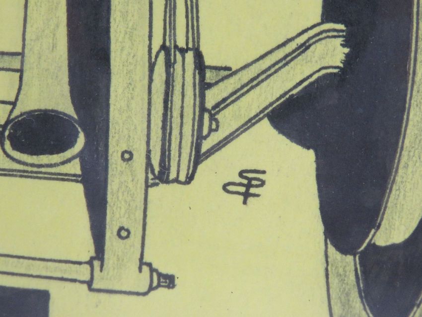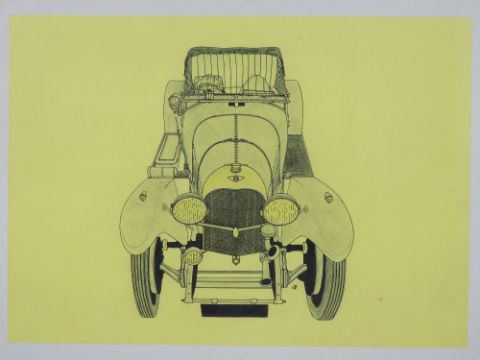 A pair of pen and ink drawings of vintage motor cars, one being a Bentley, each 42 x 30cm, framed and glazed.
