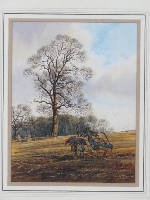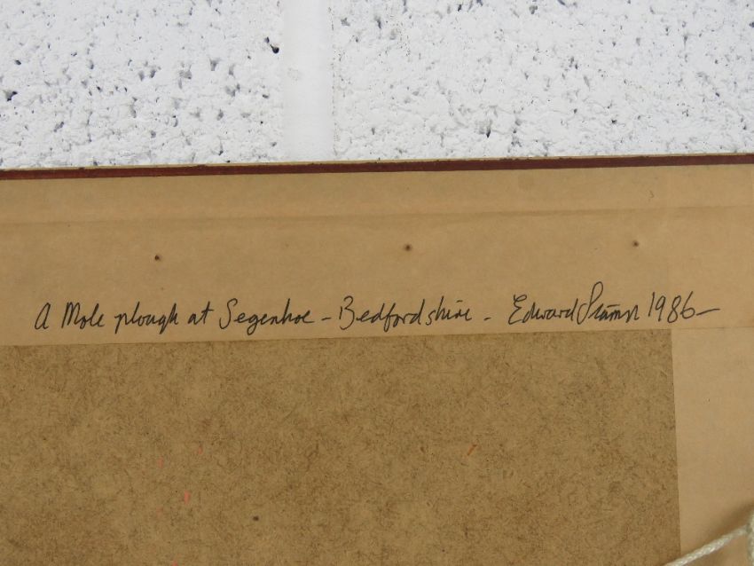 Edward Stamp, watercolour, entitled 'A Mole Plough at Segenhoe, Bedfordshire', signed lower left and dated 1986, 23 x 29cm