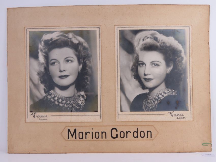 Two monochromatic original press photographs for the actress Marion Gordon, by Vivienne in a framed montage 54 x 65cm.