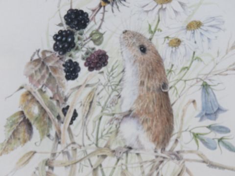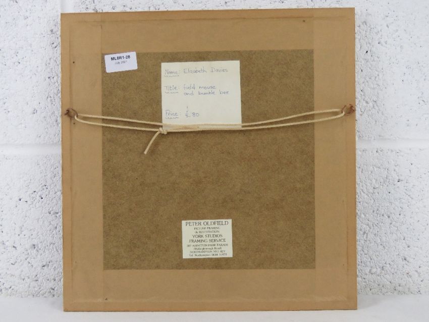 Elizabeth Davies, watercolour, entitled 'Feild Mouse and Bumble Bee', framed, mounted and glazed, sight size 24cm dia.