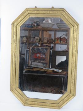 A large octagonal wall mirror having carved and gold painted wooden frame measuring 79 x 53.5cm.