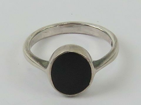 A silver and onyx signet ring, unengraved, size K-L.