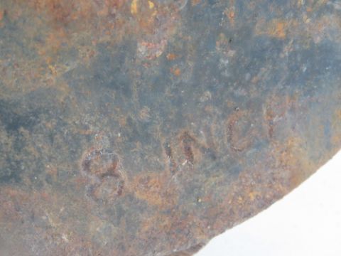 A cast iron swing skillet for an open fire having Swaine mark to base, 8".