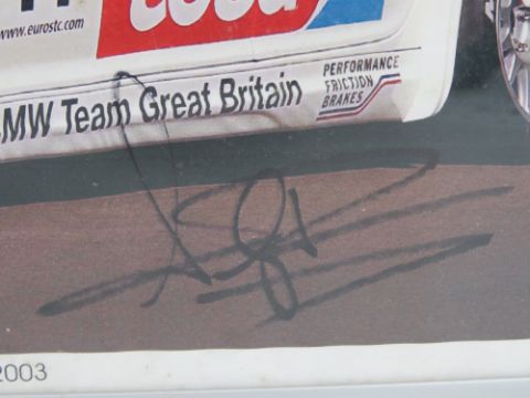 A framed photographic print from the ETCC Donington Park Race Meeting 29th June 2003 signed by Andy Priaulx, 29 x 41cm. Prov: From the collection of a prominent member of the Guild of Motoring Writers.