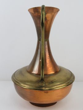 A large copper and brass jug standing 45cm high.
