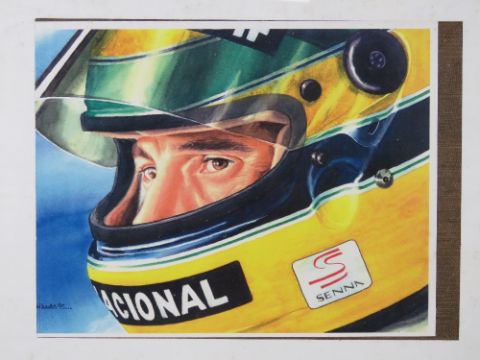 Four contemporary frame less framed Ayrton Senna prints.