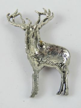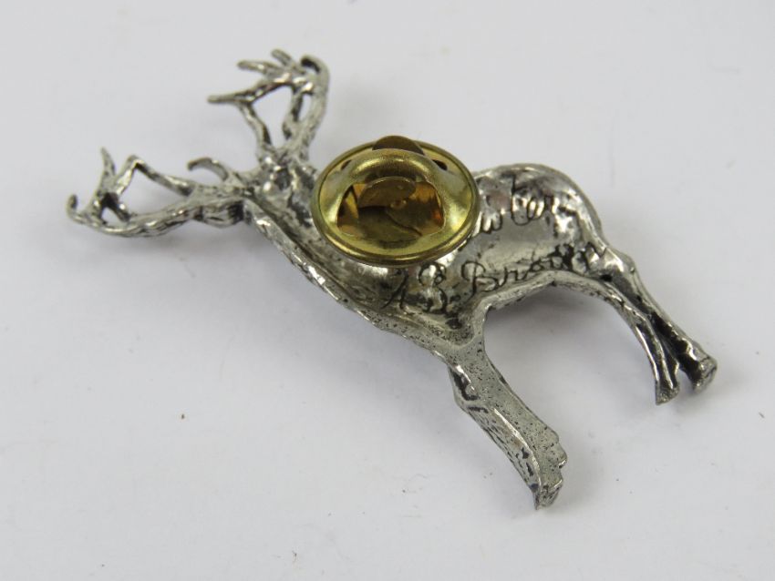 A pewter brooch in the form of a stag by AB Brown, in presentation box.