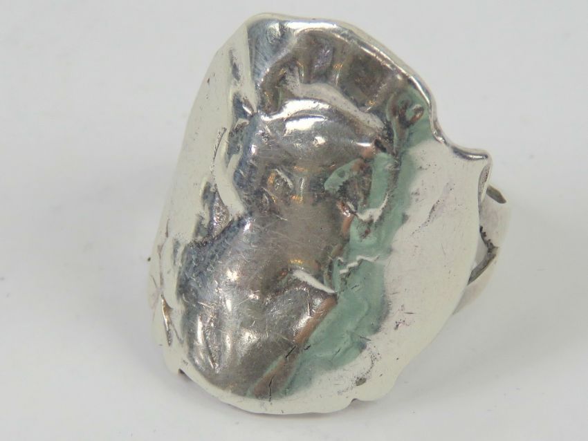 A HM silver ring having female portrait upon, hallmarked London 1942 with makers mark for Marples & Co, size R.