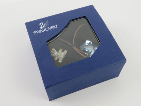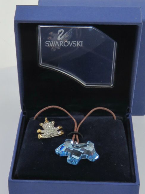 A Swarovski crystal pendant in the form of a dog complete with cord necklace and box. Together with a Swarovski crystal charm in the form of a Teddy bear. Two items.