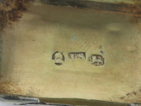 A George III silver gilt vinaigrette hallmarked Birmingham 1817 with makers mark for John Shaw, hinges a/f. With vintage silver plated salt spoon.