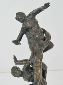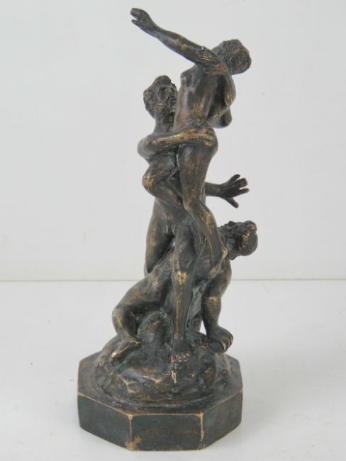 A bronze scuplture 'The Abduction of a Sabine woman' after Giamboloena, late 19thC Italian grand tour souvenir, foundry marks underneath (Naples?), standing 22cm high.