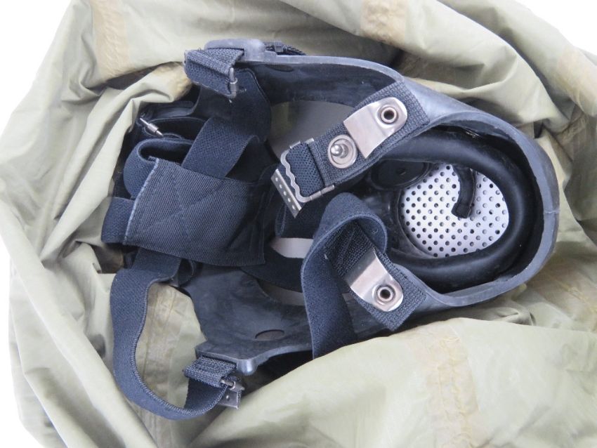 A South Korean K-1 Military gas mask in transit bag.