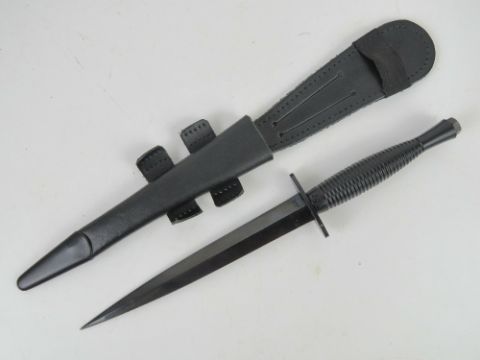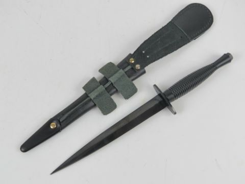 A Commando 3rd Pattern dagger made by J.Nowill & Sons Sheffield, having broad arrow upon, with leather sheath. In box.