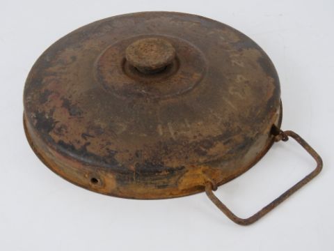 An inert WWII German Afrika Korp Tellermine with stencilling upon.