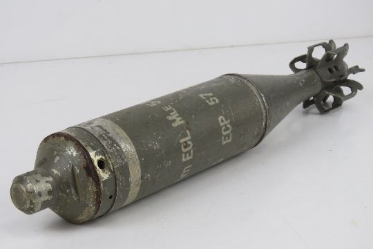 An inert 60mm ECL MLE 54 mortar, 36cm in length.