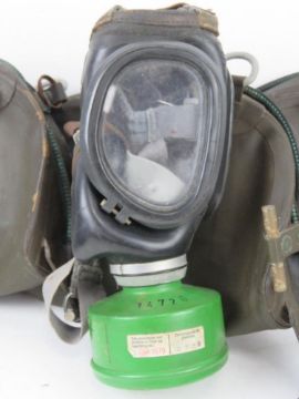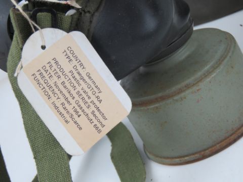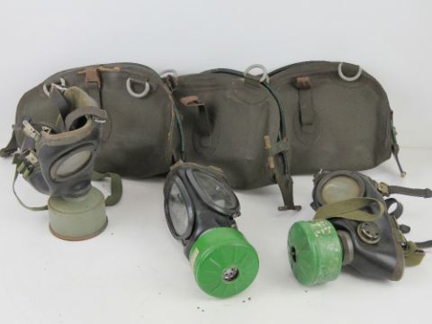 Three German Bundeswehr Draeger/CTG-RA gas masks with filters in carry cases.