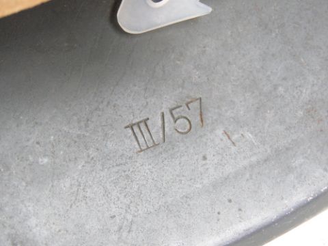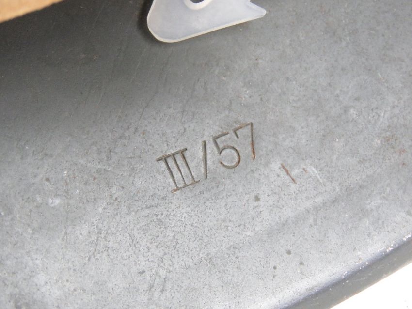 A late 20thC East German helmet marked within III/57, having chin strap and liner.