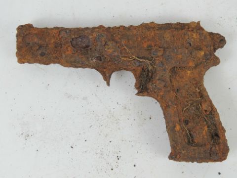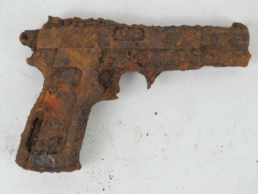 A German Browning High Power Pistol in relic condition. Battlefield relic found in the Kurland Pocket (Latvia).