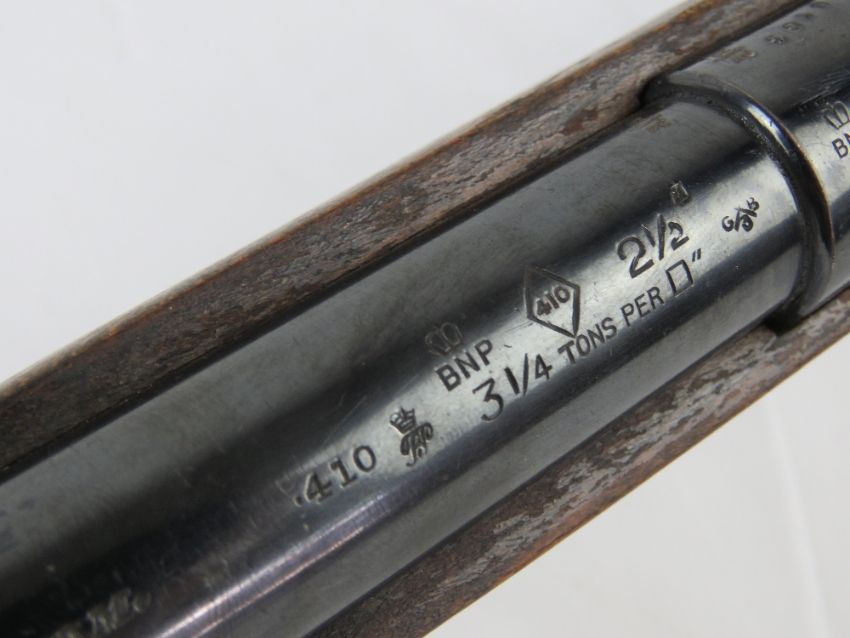 A deactivated British Webley .410 Gauge bolt action shotgun, moving bolt, safety, and trigger, non firing action. ST-59004-SN-9163. With EU certificate.