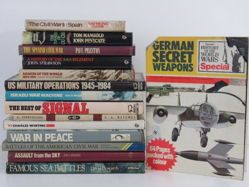 A quantity of assorted military themed books inc; 'Assault From The Sky', 'South African Defence', 'Famous Sea Battles', 'Armies of the World 1854-1914', etc, fifteen items.