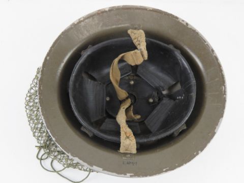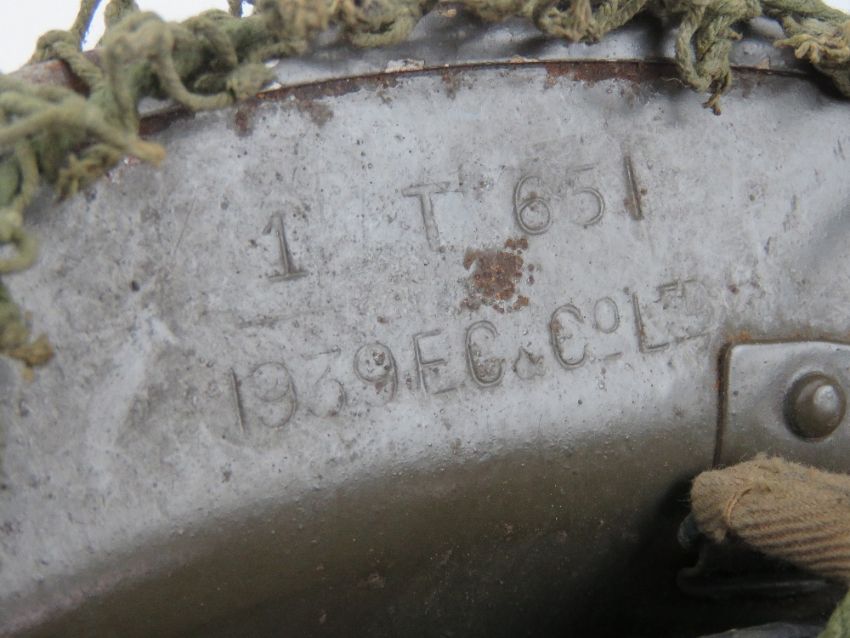 A WWII British Brodie helmet, dated 1939 with EC&Co Ltd markings, having liner, chin strap and netting.