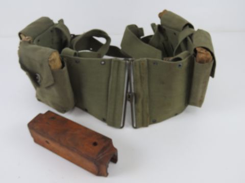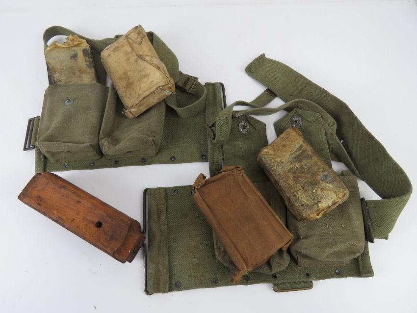 Four US BAR magazines in canvas pouch, un-issued, with BAR wooden foregrip.