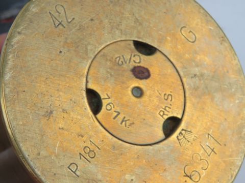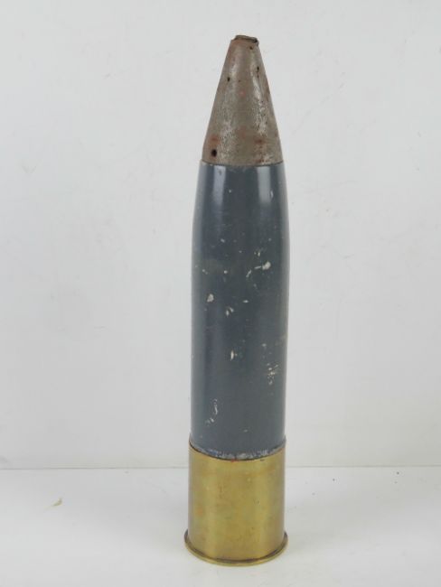An inert WWII German LG18 75mm mountain gun round, dated 1942 and having marks upon.