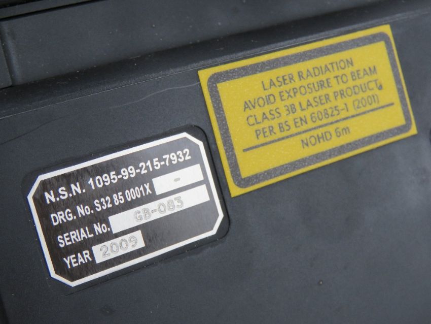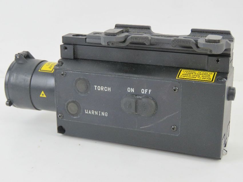 An SA80 LTLE Class 3B Laser system, used for Laser designated weapons, having original British plates and mount, instruction manual and Desert Utility pouch.