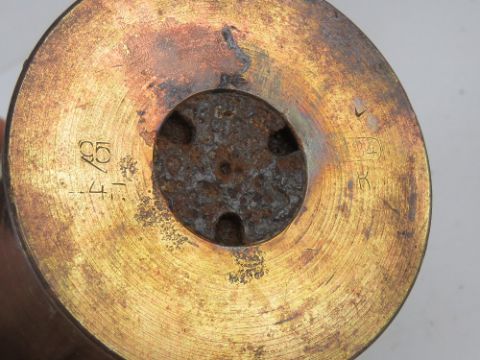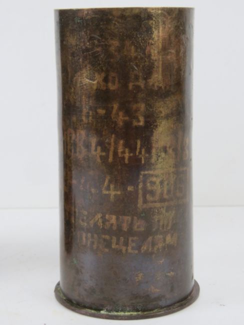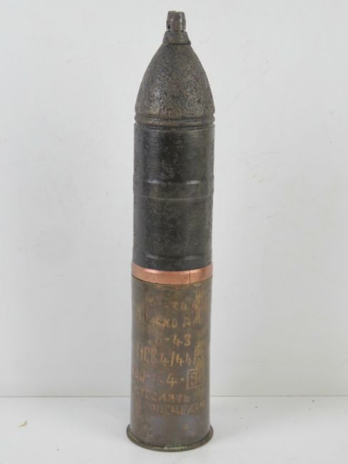 An inert WWII Russian 7.62 Heat shell, some stencilling remaining and dated 44, the head is in semi relic condition, the fuse unscrews.