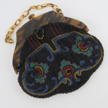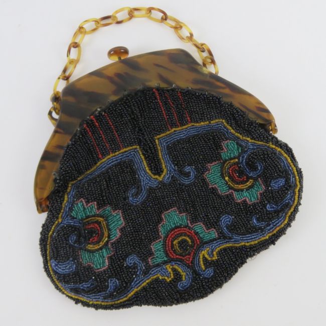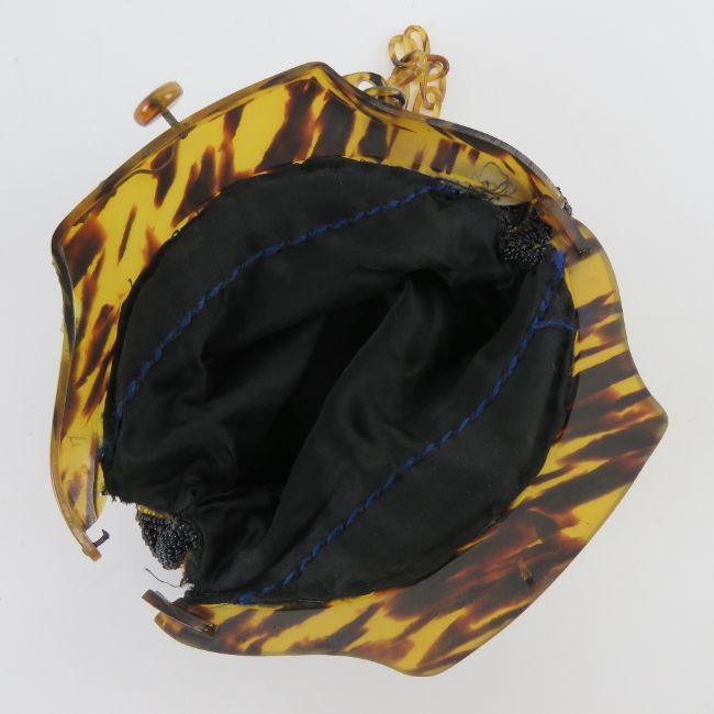 A vintage lucite and beaded fabric evening bag, a/f, approx measurements 18.5cm wide.