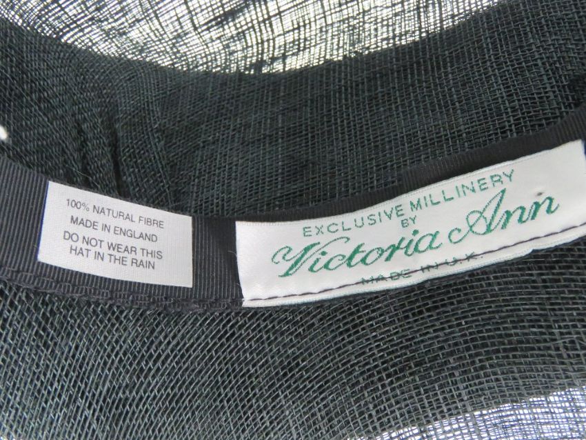 A Victoria Ann natural fibre hat having faux flower and feather design. Approx size 7.