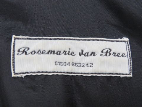 Designed and made by Rosemarie van Bree; blue and white polka dot jacket style dress, approx measurements - 34" chest, 37" length to back, 14.5" sleeve.