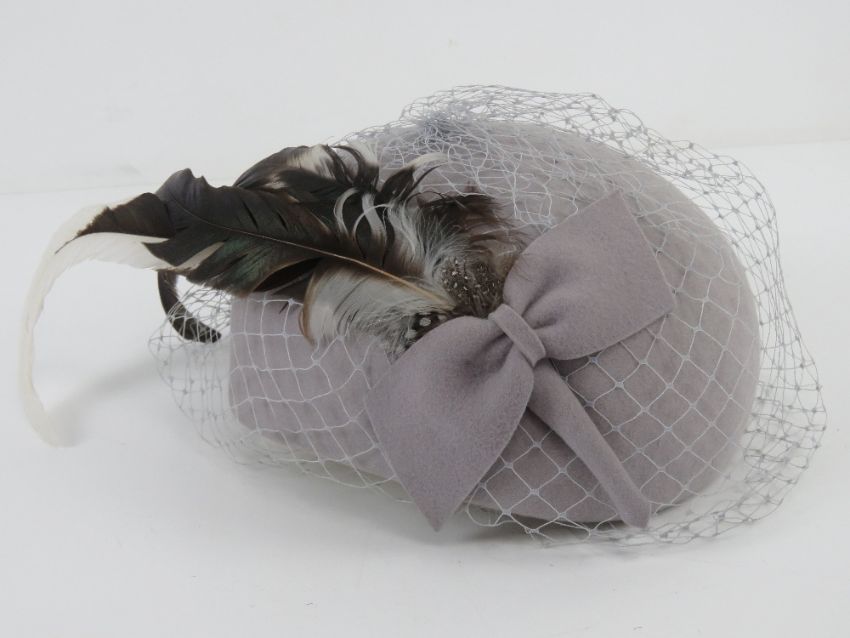 Vintage grey felt hat by Kangol, having netting and feathers upon. Approx size 6 3/4.
