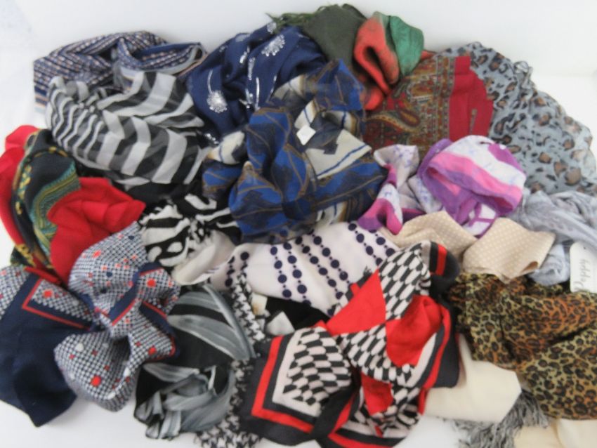 A quantity of assorted scarves and shawls, some silk noted.