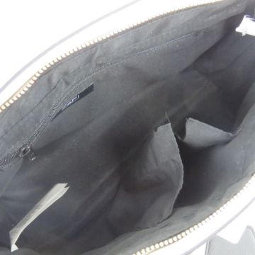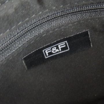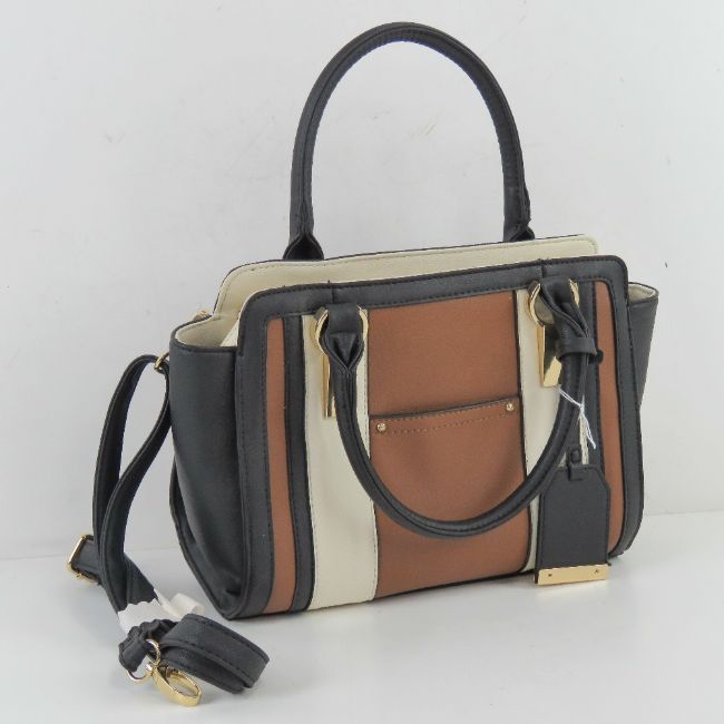 A contemporary handbag in black, brown and white, approx measurements, 28cm wide, slight damage to open interior pocket, having shoulder strap and zipped pocket within.