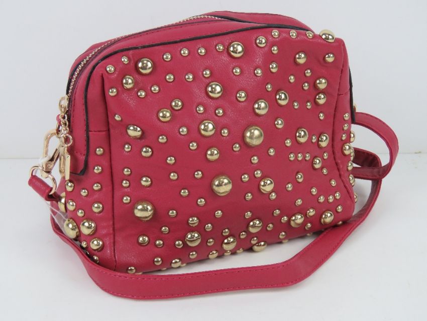 An 'as new' pink studded handbag handbag 19 x 17cm.