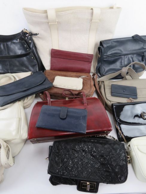 A quantity of assorted vintage and contemporary ladies handbag including Forelli and Jane Shilton.