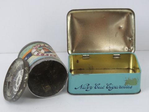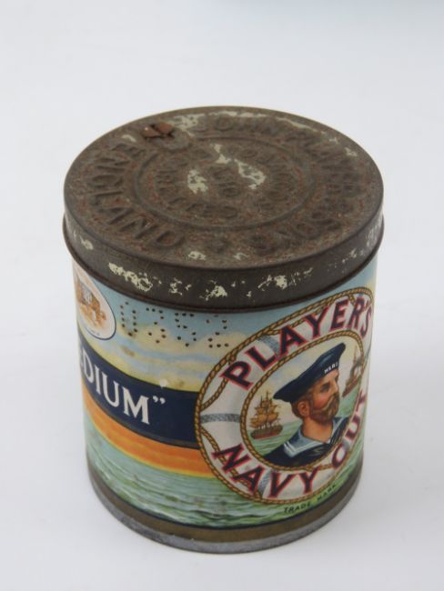 Three items of Players cigarettes advertising ware being a 'medium' circular tobacco tin, a gold leaf lidded tin and an ashtray.