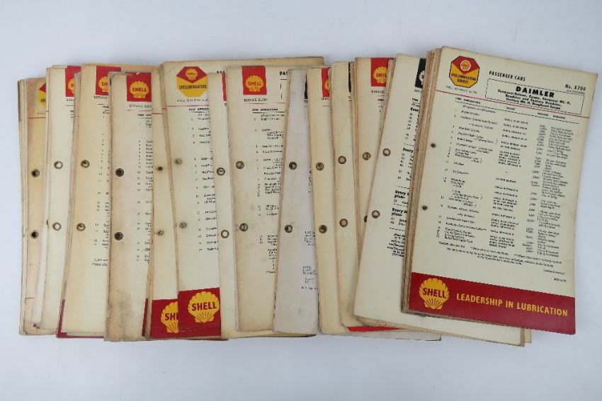 Around 65 original Shell service guide charts c1960s.