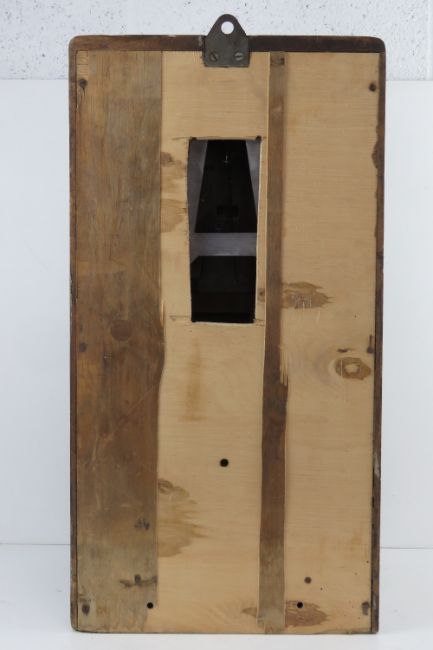 A National Time Recorder Company clocking-in machine, enamelled dial with Arabic numerals and marked St Mary Cray Kent upon, having twin winding apertures, key and pendulum and a small quantity of clocking-in cards, 36 x 31 (max) x 69cm